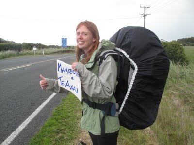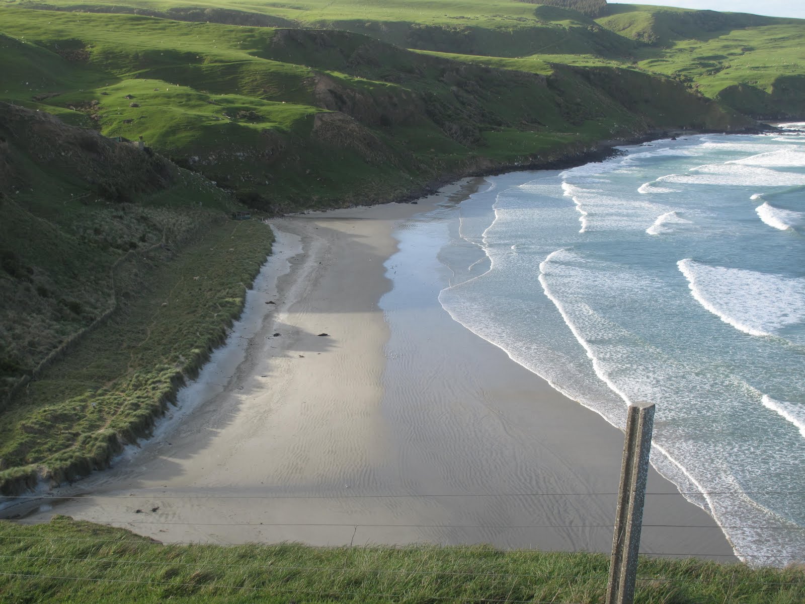 So thumbs it was. We stuck ours out on the outskirts of Balclutha and got a ride within 15 minutes to Surat Bay, where we camped overnight at this awesome little campground. I was admiring some fine-looking home-made veggie burgers being cooked by a nice Irish lass and we got to talking. Turns out her and her fiance had a campervan and were travelling along the Southern Scenic route as well. They had some spare seats. We had some spare wine. It all worked out.