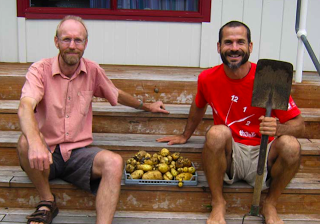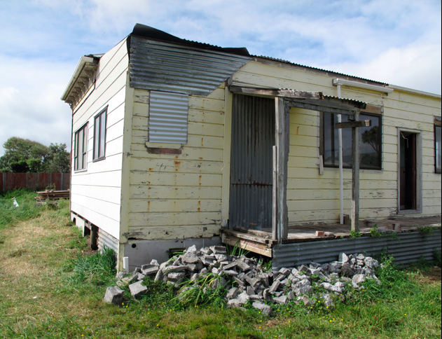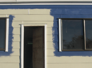 After a few hours we had covered the places where the facings will overlap with two coats. And were left with a patchwork-looking house ready for facings. Just in time too, because we were greeted with three straight days of rain just as John the Intern arrived.