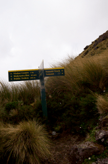 We had completed our loop in three days, while most people take 4-5. We camped out the third night, and finished off the final day by hiking over to North Egmont (the British name for the mountain) Center for a hitch home. When we came to the sign for the Taranaki Summit Track, we decided somewhat disappointedly that there wasn’t time, or the wherewithal in my left calf and knee, to make it to the top and back in time for a hitch home. However, with all things considered, it was quite a successful feat. The rewards far outweighed the trials, and primed us for further tramping adventures in the coming months.