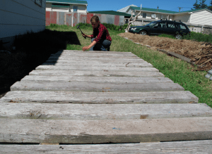 Reusing items normally destined for the recycling center is something I have always been fond of. There is something satisfying about repurposing, say, a cardboard container that once held Brie cheese, into a pretty box for presenting a gift of Christmas chocolates. Until the advent of my experience here in New Zealand, this was basically the extent of my creative repurposing: pretty small-scale. At the ECO School, though, our projects involve reusing materials on a large scale.