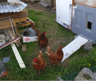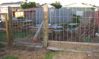 They are fairly large for tractoring, so we decided to build a chook yard for them using various second-hand materials.
