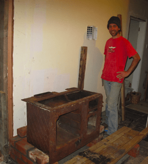 Although we have made it most of the way through this winter relying on passive solar heating, there have been a few cloudy days that have tested our reserve and forced us to get out the electric heater. None the less, our power bill remains under $30. But for a long time we have planned to install our second hand Schacklock 501 coal range (“multi-fuel stove”) in the kitchen. In true permaculture fashion, it will serve multiple purposes. We plan to use it for cooking and space heating. (I bought it on Trade Me even before we bought the house.)