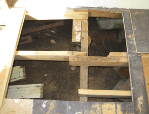 Working closely with Building Control, we embarked on the process of building a full foundation and hearth slab. This first entailed cutting a hole in the floor…