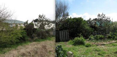 Yet despite the ‘Before’ pictures of weeds and rubbish that accompanied last Saturday’s column, we still had about 40 people turn up for garden tours on the weekend. They must have been really amazed to find over 80 fruit trees and berry bushes in the ground along with extensive annual vege garden beds. Ross and I have saved the rest of you the trip by including before and after pictures this week, but I’ll fill in some of the highlights of what makes an eco-thrifty foodscape.