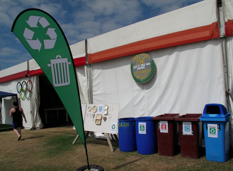 2. Hi Dylan,The Masters Games mandated that the caterers use these certain products while contracting them. The caterers may have offered resistance, but the 'bio-plastics' were cheaper than plastics so offered none. The 10 day event is a lucrative contract for caterers, so I'm sure there would have been a few competing for it. The food, serviettes, plates, bowls, cutlery, bio-plastic cups and even beer boxes were all put in the 'Compostables' or 'Bio-Bin' together. Meat and all!