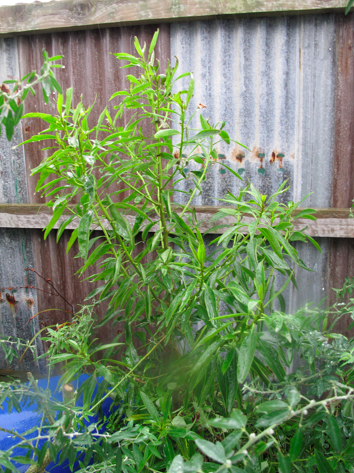 To compare like with like, the next photo is of a native hebe without wind protection.