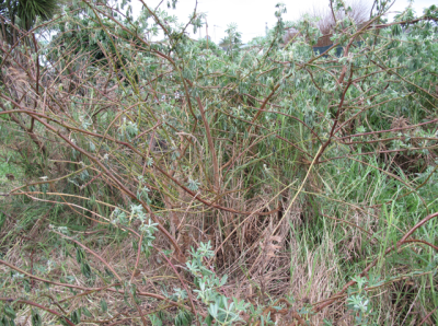 Biologically, here is evidence of wind damage to the ‘wild’ bush lupine growing unprotected in front of our home.