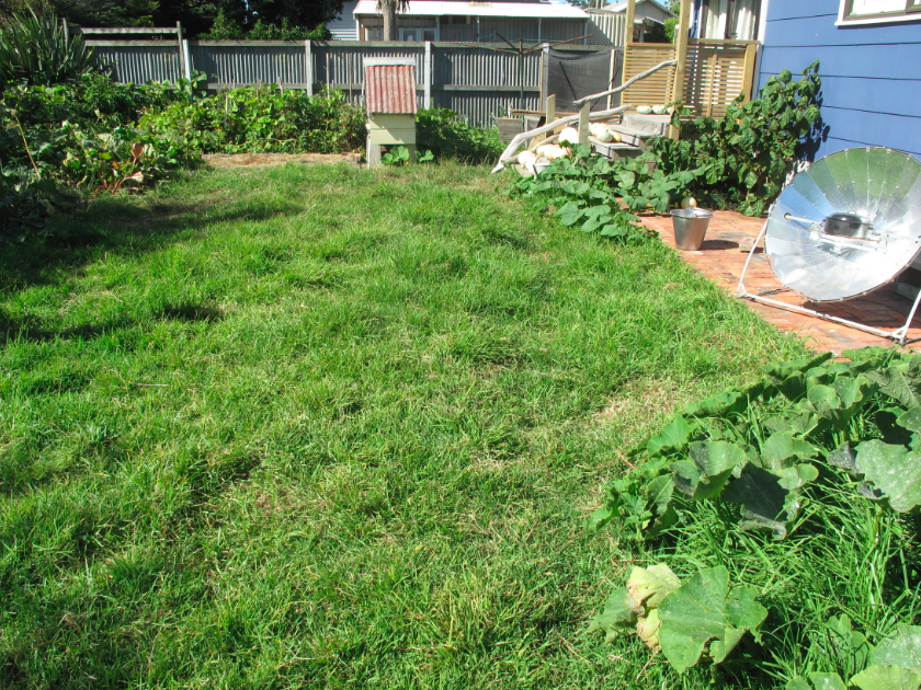 I’ve been writing a lot about warm, low-energy, healthy homes lately, so I’ve decided to change things up for a mid-winter’s break and write about summery things like yard and garden. For us, the outdoor “renovation” of our weed-infested section has been as significant as the passive solar redesign of our old villa. We have used most of the same design thinking in both cases, and strive to create systems that both save money and a have low impacts on the environment.