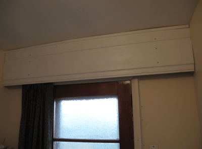 I’ve written about our pelmets before so I’ll put this briefly. I inverted the weatherboards so that the scallop was facing down (opposite of its orientation as exterior cladding), and ripped them lengthwise with a circular saw to suit the width for different rooms. The photos show 1 and 1/3 weatherboards screwed together to make a tall pelmet reaching from the top of the door in our ‘mud room’ to the ceiling.