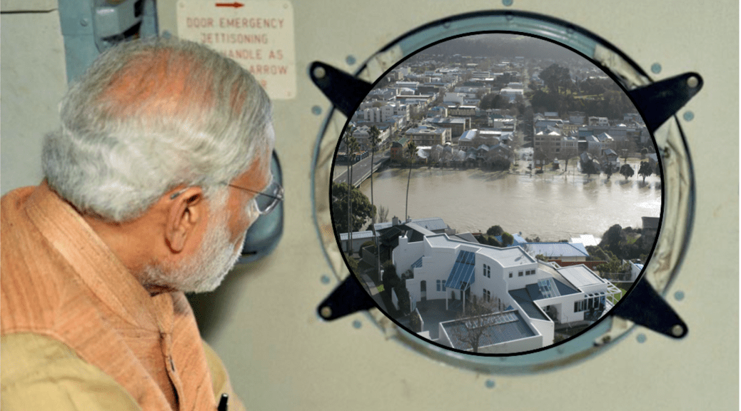 At least we can rely on India’s Prime Minister Narendra Modi, and his press office, for giving it to us straight on the flooding. What most people don’t realize is that Modi made a special trip to Whanganui in June to assess the extent of our own flooding as shown in the accompanying photo.