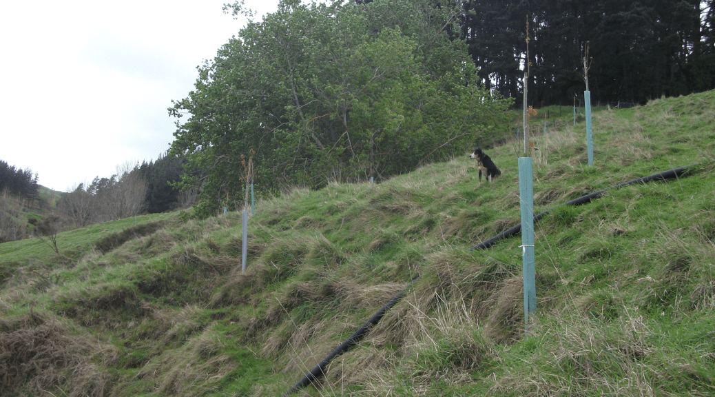Following the flooding of last year most of our time, energy and money has gone into protecting our stream sides from further erosion, which appears to have accelerated since the flood. The process involves fencing off the streams from stock and planting lots and lots of trees, shrubs, flax and native grasses.