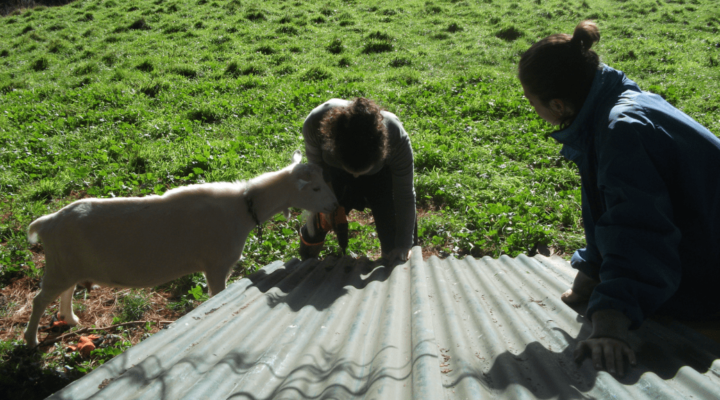 The whole job took less than three hours from off-the trailer to completion – all while entertaining a three-year-old boy and six goats. The pigs paid us little interest, but hopefully they’ll appreciate the final product made entirely of reused materials save for the roofing screws.