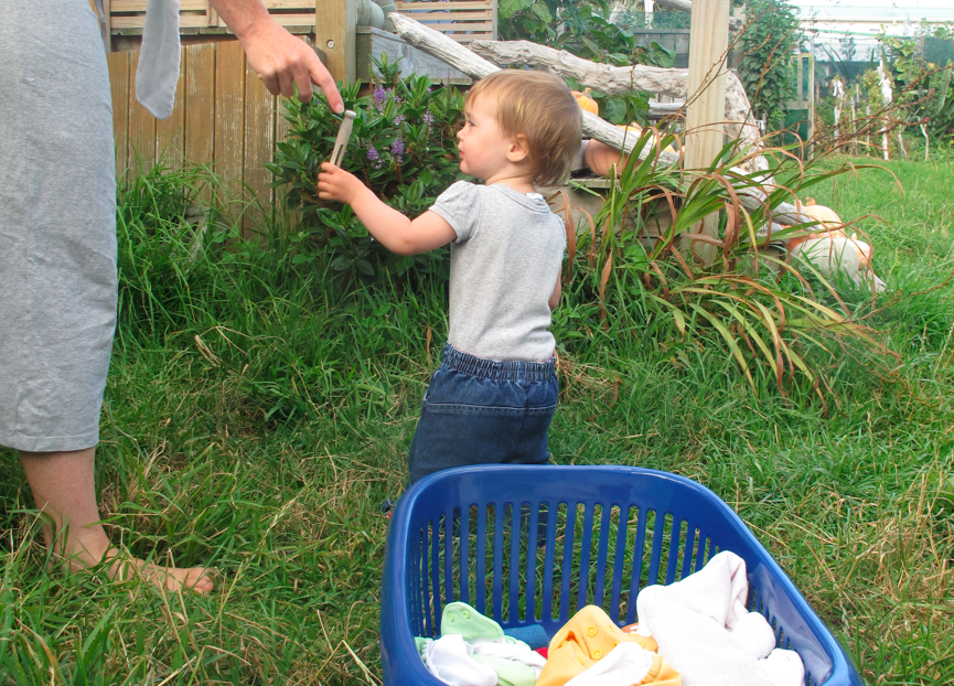 Two habits we want Verti to develop are choosing her own entertainment and putting things away after using them. To these ends, we have five toy storage areas in her room that she can access. These include a low shelf (secured to the wall for safety), two draws under her cot, a large toy basket, a rack for her play scarves, and a driftwood tree limb for her bags. She can access any of her toys whenever she wants, and has just begun putting them away too.