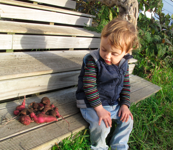 Additionally, the low couch – really just three cushions and a cleverly made wooden frame – has been a big success. Verti loves being able to climb onto it easily and act ‘grown-up’, and we love sitting on it with her and reading stories.
