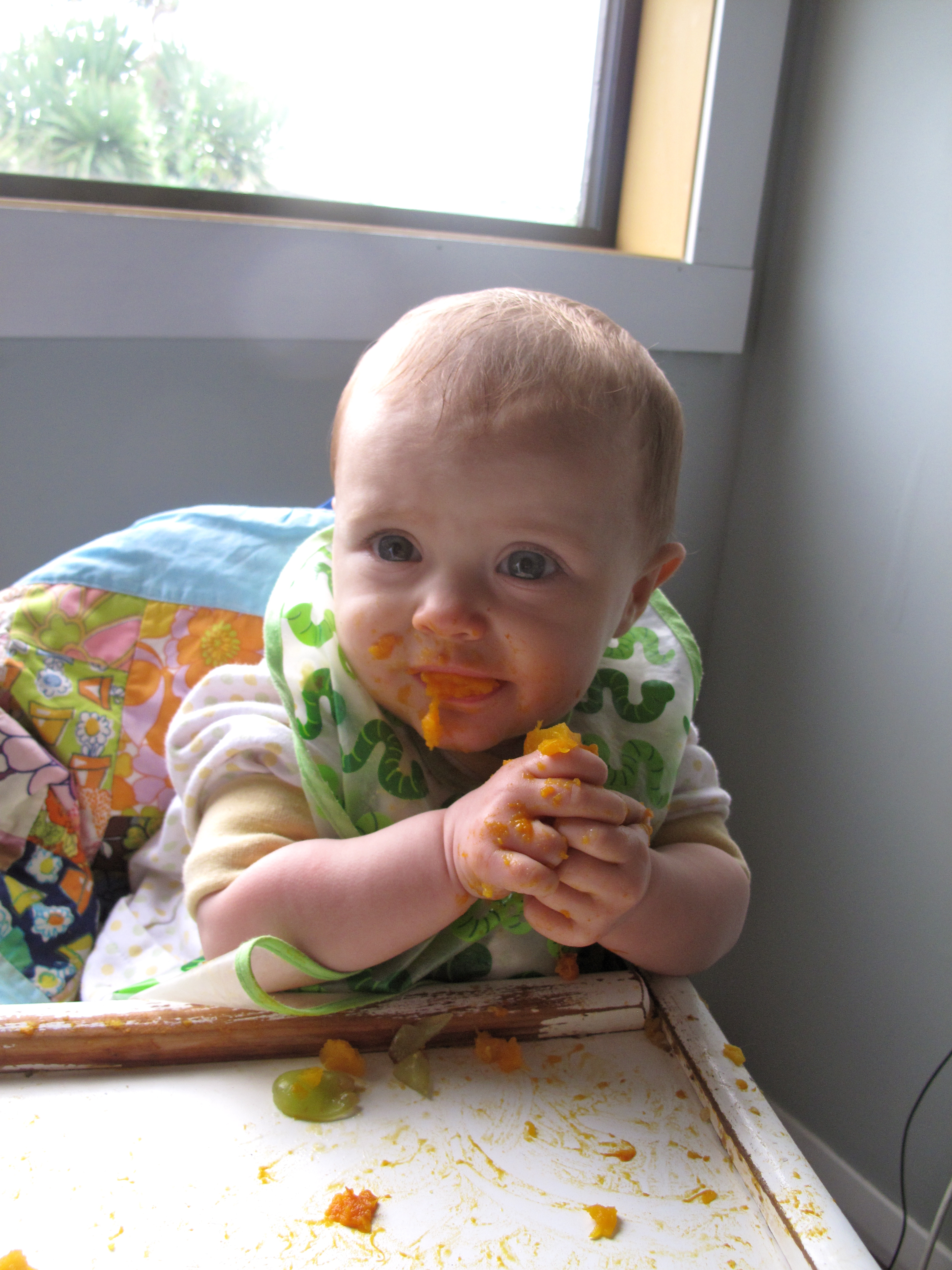 Our Ergo was handed down to us by my sister and brother-in-law, so I already had lots of practice carrying around the ETNeices in it during my many summers of nannying them. We love the Ergo. We started using it fairly early, although I preferred the stretchy wrap until she outgrew it. We used it as a front pack until about 7 or 8 months, and now use it both front and back. Getting in on with her on my back was a superhuman one-person job at first, but is getting easier as she gets better at standing. I don’t know where we’d be without our ergo, it is where ETB does most of her napping and hence is where I do most of my working.