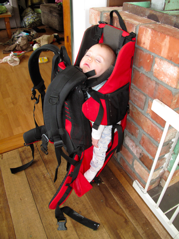 Left: We need to invent some kind of holster for the frame pack so ETB can nap in there without me wearing it.