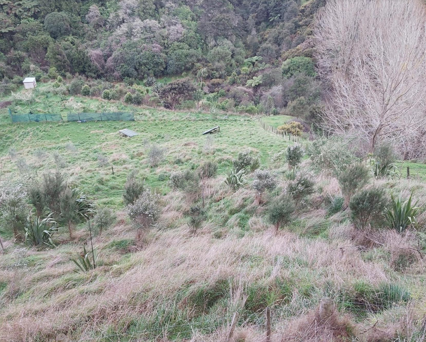 The valley is looking great, with about 2,000 trees planted on the slopes and along the stream, along with the avocado orchard.