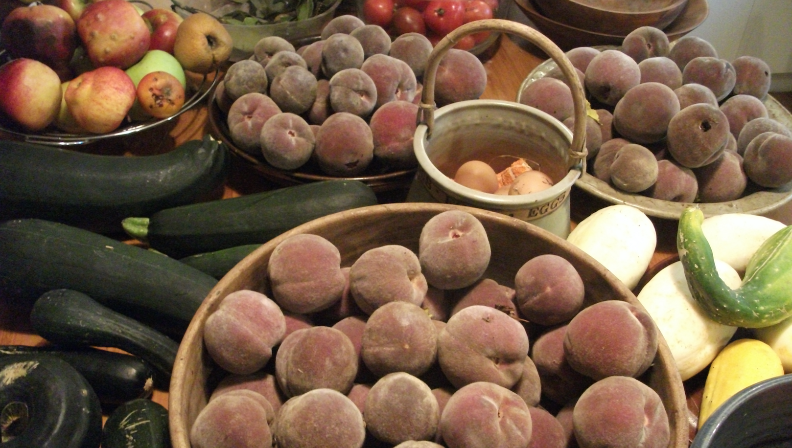 The farm is thriving with fruit and vegetables at the moment – we can’t even keep up with it all. The gardens have been going great all summer and now the autumn fruits are ripening in the orchards.