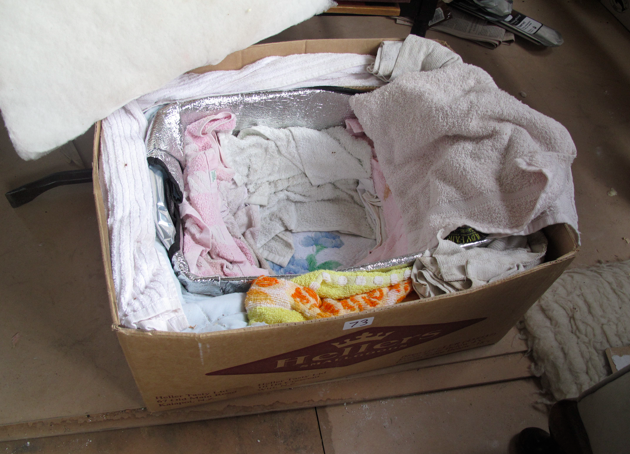 Our straw box happens to be full of towels, not straw. But we still call it a straw box. The key to a good straw box in insulation on all 6 sides.