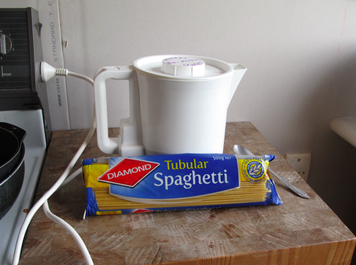 A great example of using a straw box – not to mention an excellent energy-saving cooking technique – is what we call “10 watt pasta.” This cooking technique uses a small fraction of the electricity of boiling pasta for 10 minutes on a hob (stovetop). Here’s how to make it.