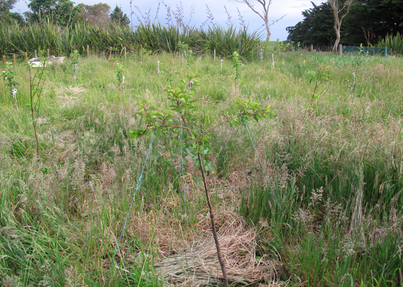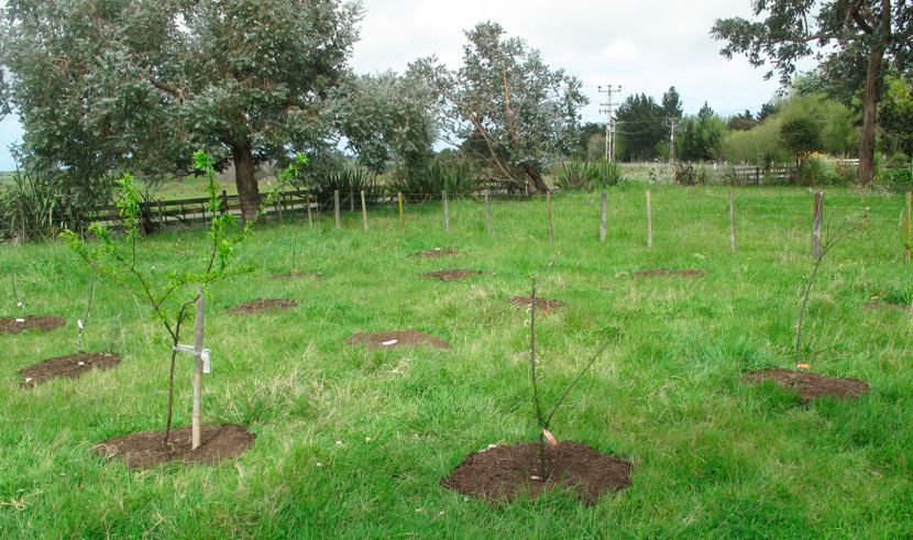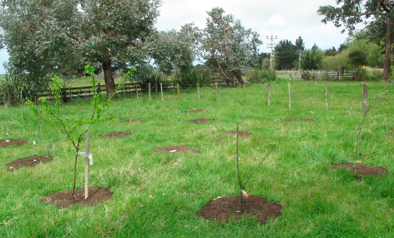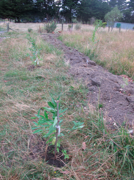 Tagasaste (tree lucerne) is a common nurse tree. On our Castlecliff property we have used it extensively to nurture the fruit trees. Tagasaste is a preferred nurse tree for many reasons: it is fast growing – reaching a height of 2.5 metres in 18 months; it fixes nitrogen in the soil; it is relatively wind-tolerant and drought-tolerant; it’s foliage is good stock fodder; it’s flowers attract beneficial insects; it is a great chop-and-drop mulch for fruit trees; when it is no longer needed it can be cut down and burned as firewood.