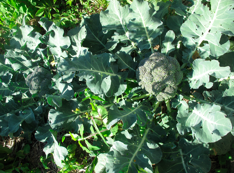 Big, beautiful broccoli flourishing despite white butterflies.