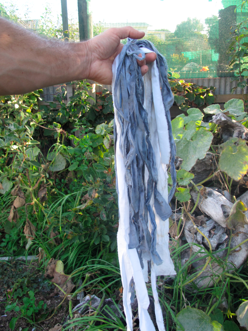 The tomato ties – old bed sheets torn into strips – are collected and stored for next year.