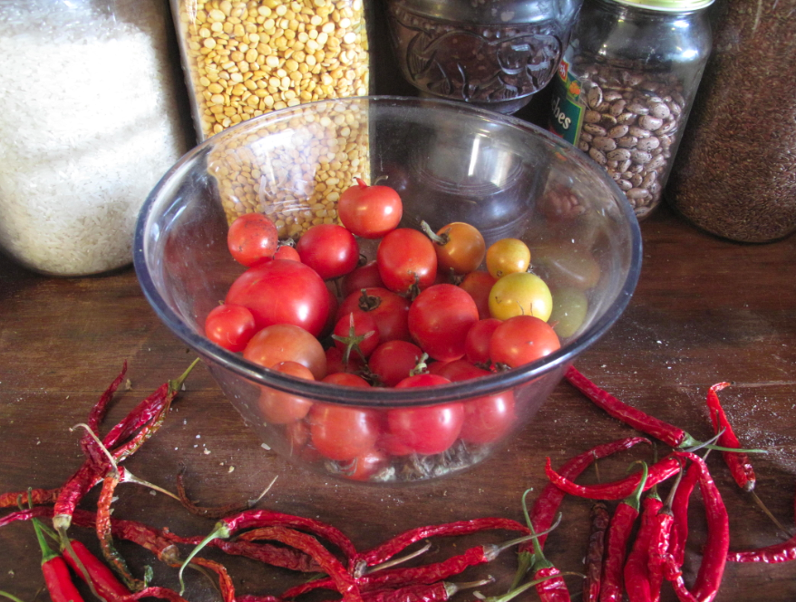 As of now, we have a small bowl of tomatoes on our counter and a few more outside on some very tired looking but still living plants.
