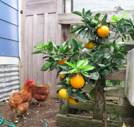 The tamarillos got pounded by wind three weeks ago, but are recovering now.