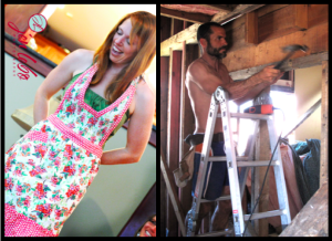When we first bought this house, before the wedding, before the move, before the work, I had a vision in my head of the two of us working side by side. Day after day we would saw and hammer, plan and design, sweat and problem solve. We would finish our long days exhausted, but filled with a sense of accomplishment at what we had achieved. We would have fun during the process, joking and laughing our way through errors that more experienced builders wouldn’t make. Birds would sing. Music would be playing in the background…the good life.