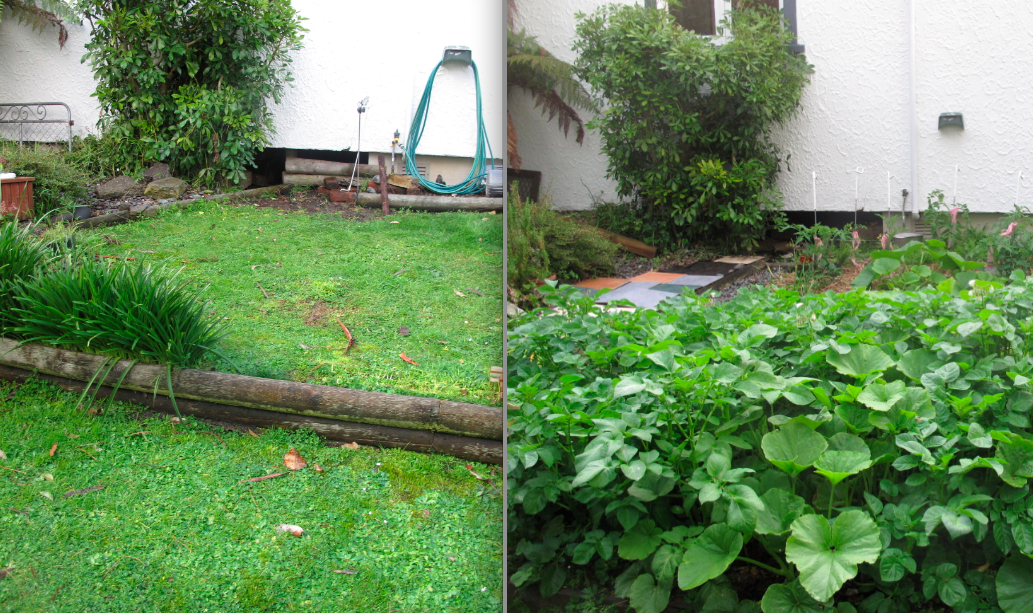 Another example of four-dimensional design is the lazy conversion of lawn into vege garden.