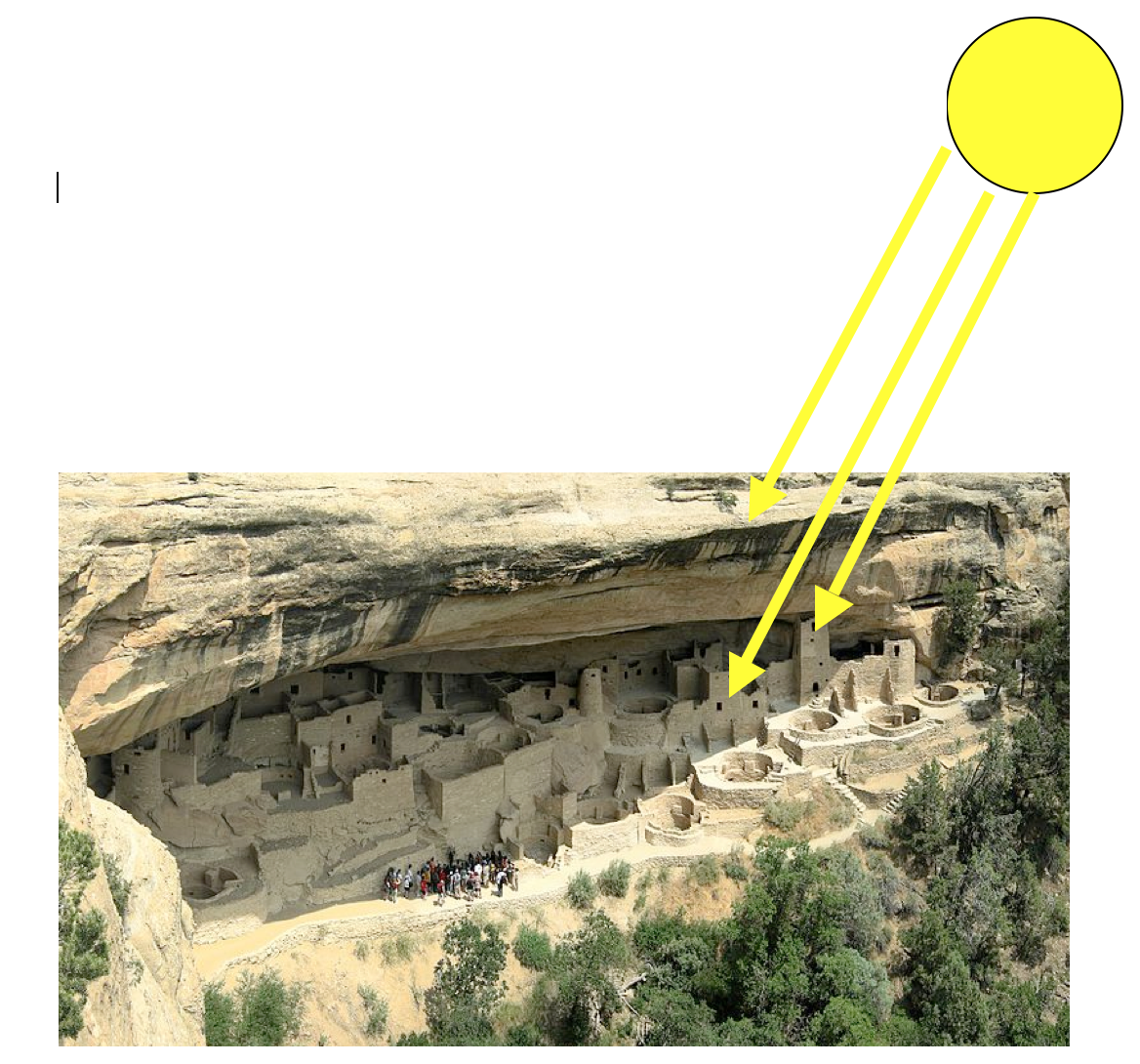 One reason that Mesa Verde was attractive to them was a series of south-facing (toward the equator) cliffs that were warm in winter and cool in summer. “What’s this?” you say. How so?