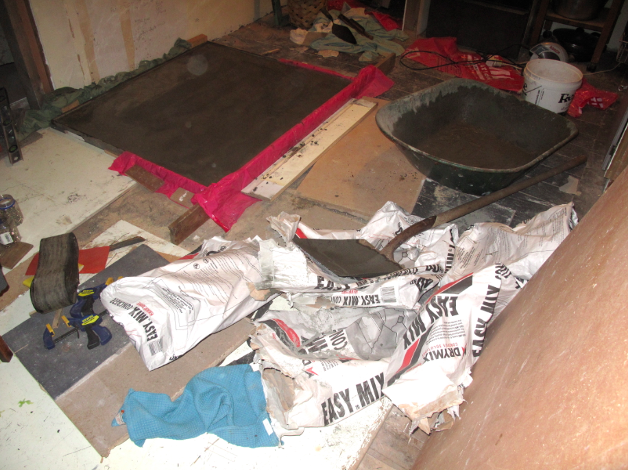 Throughout the day some of the sunlight energy is absorbed within thermal mass, ensuring that the interior does not overheat while storing the excess warmth for overnight when it is released into the home. Beyond the mass already in the structure, we added approximately one thousand kilograms of thermal mass that receives direct winter sunlight from sunrise to sunset through three large windows and the French doors.