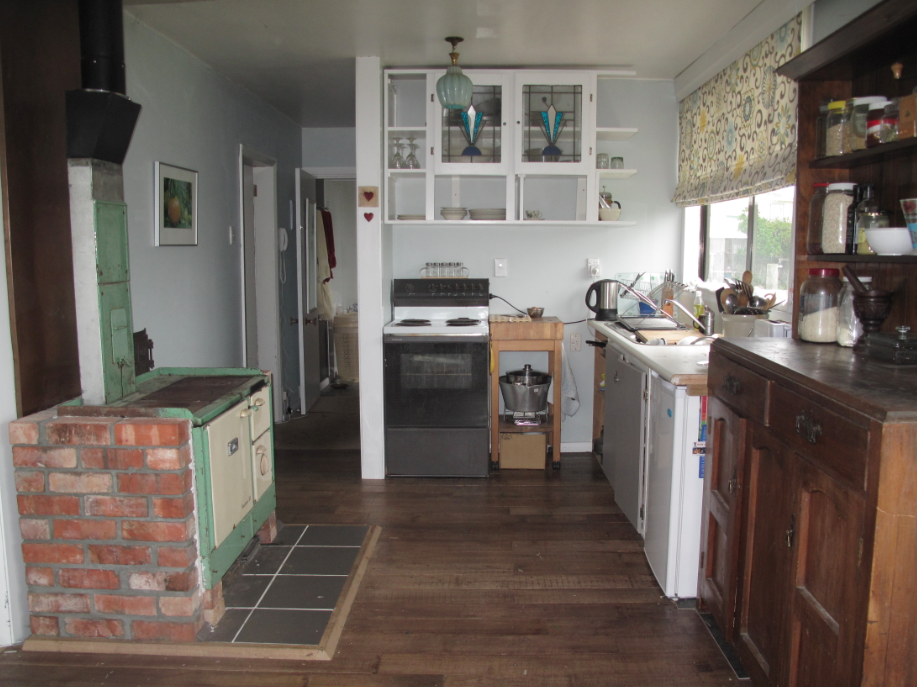 This extra thermal mass is essentially invisible because it takes the form of an extra layer of Gib on the walls, a cast iron claw foot bathtub, and a multi-fuel cooker with brick surround. When the sun is not shining, the multi-fuel stove easily heats the northern part of the home to 20 degrees or above on a few sticks of wood, with the added benefit of cooking and baking.