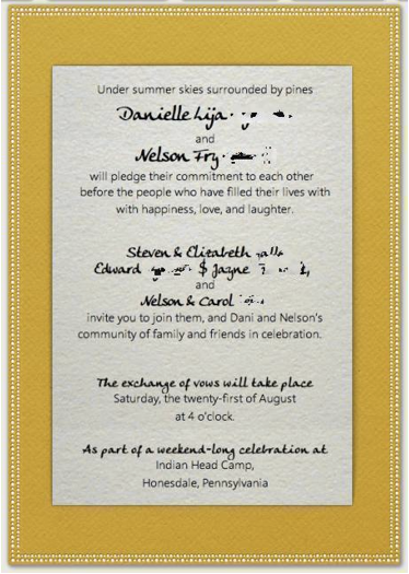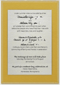 So, if my recaps seem a bit schizophrenic… If you wonder why we were so staunch about non-paper invitations, and then printed out eight page programs… If you wonder why my dress is re-used but my flowergirls are wearing new Chucks, all I can say is it was a struggle. It was a struggle between us and what we thought our families wanted, between us as a couple, and between myself and my inner diva.