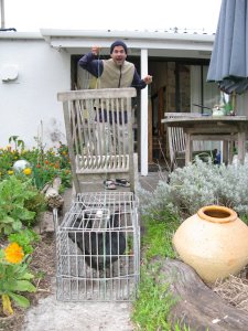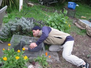 We have also been kept rather busy by the chooks. Lisa keeps her layers in a movable cage, so that they can be moved once they clear the grass and fertilize the soil in one area. In NZ this means swapping locations about once every two weeks. It is a handy technique for adding nutrients to depleted soil and keeping chooks happy and healthy through foraging. Well, while moving the coop, the chickens snuck under the fence and escaped. For hand-reared chickens this is not a problem, but our wards are not hand-reared and thus far have not responded well to our efforts to recage them. They are now three days out of their coop now and are loving every minute. Since there are no predators in NZ at all we aren’t worried for their safety, but they are doing some serious damage to our garden. There will definitely be no more seedlings planted until they are captured. We’ve heard all we need to do it grab them by their feet. If you hold a chicken upside-down they immediately “fall-asleep” because all of the blood rushes to their head. So far we can’t get within 5 feet of them before they freak out. We have tried luring them back to their home with grain, and today all three of the escapees were actually right next to the door. Unfortunately the only thing that actually went into the coop was one of those darned pokikos. Tonight’s midnight mission will be our final attempt before calling on the experienced hands of our Quaker neighbors.