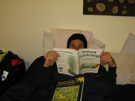 Nelson has already begun diving into his favorite part of the house, Lisa’s book collection. Still reeling from the sale of most of our books this summer, we’ve found some of our old favorites on her shelves (for Dani: Clan of the Cave Bear by Jean M. Auel, for Nelson: Permaculcture 1 & 2 by Bill Mollison).